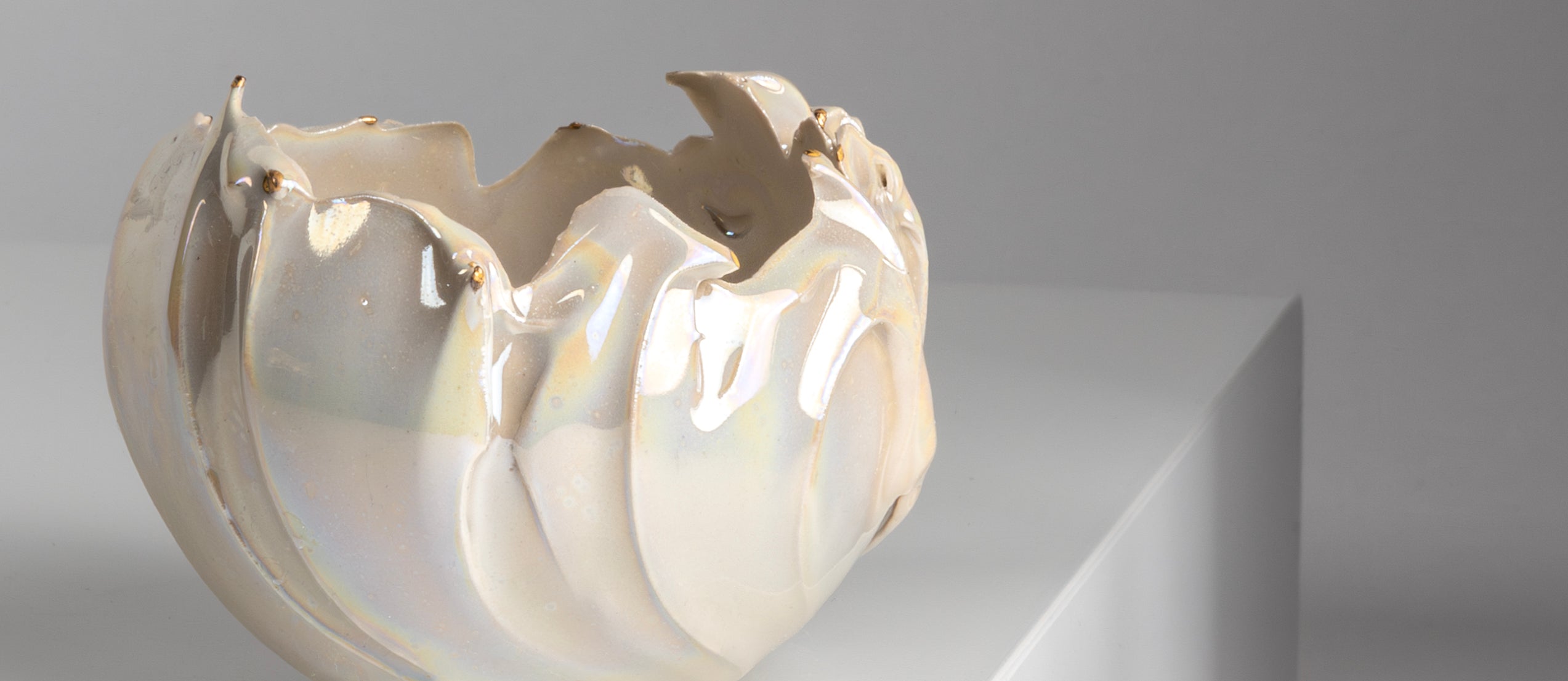 White Stoneware Mother of Pearl and Gold Lustre Plash Cups