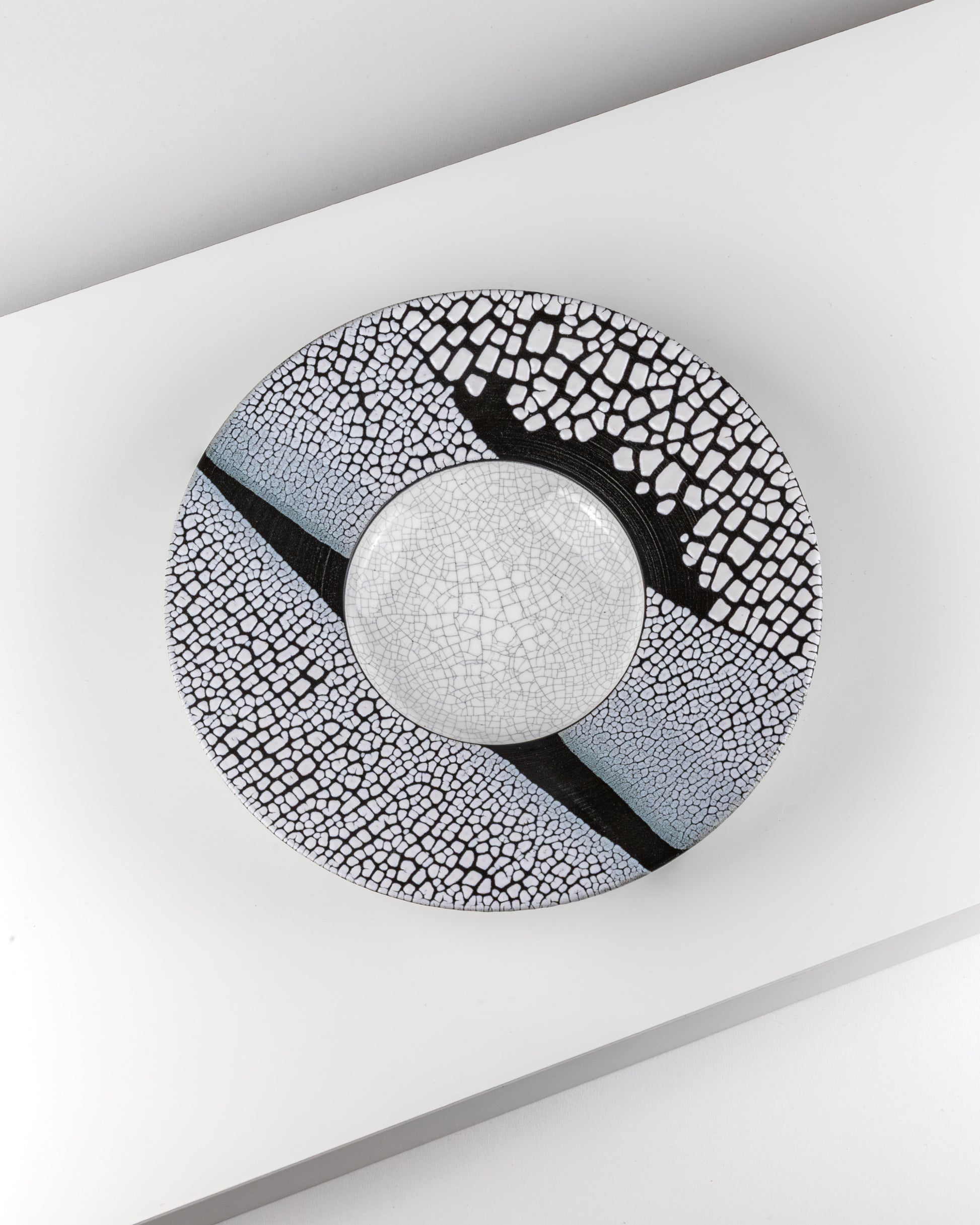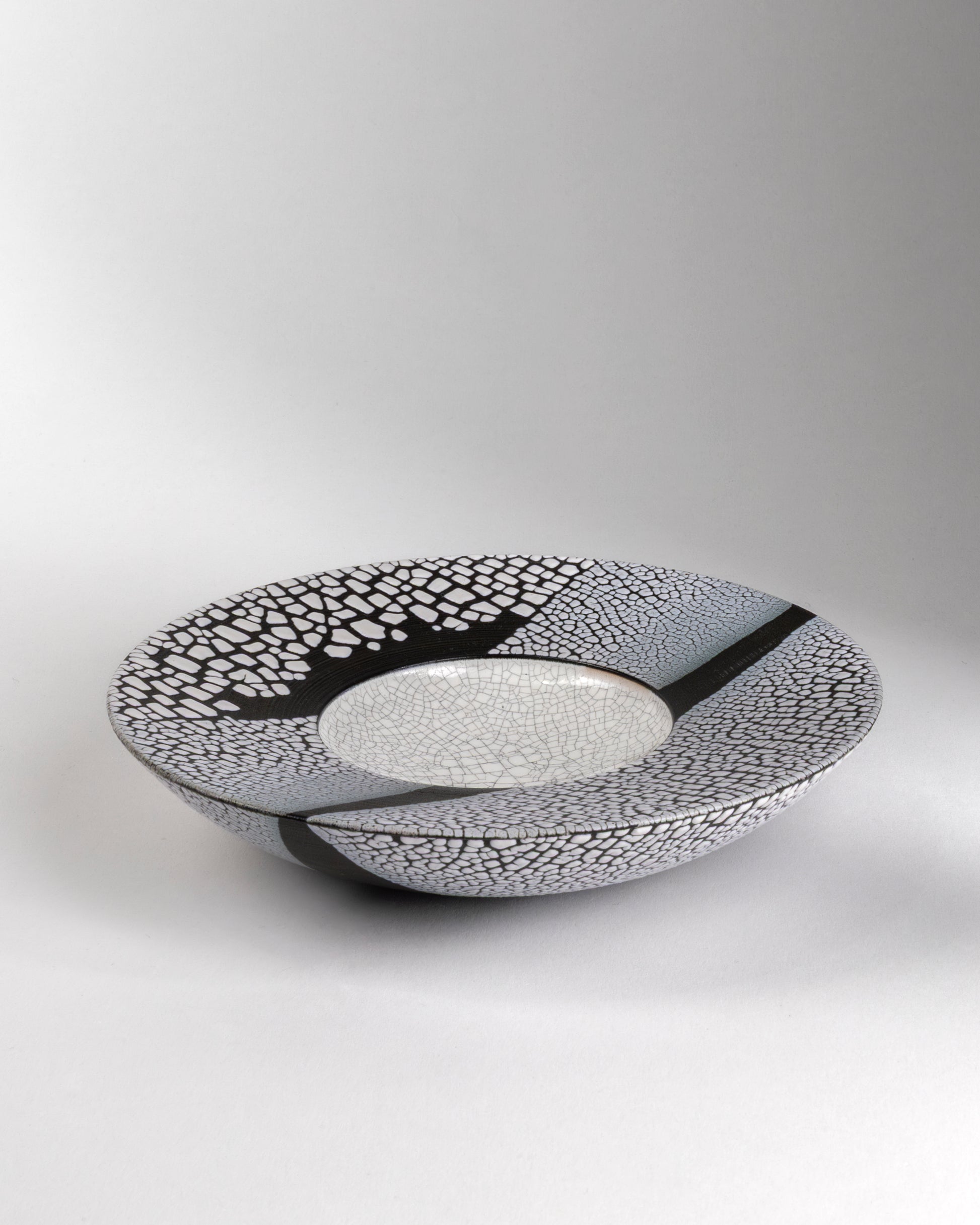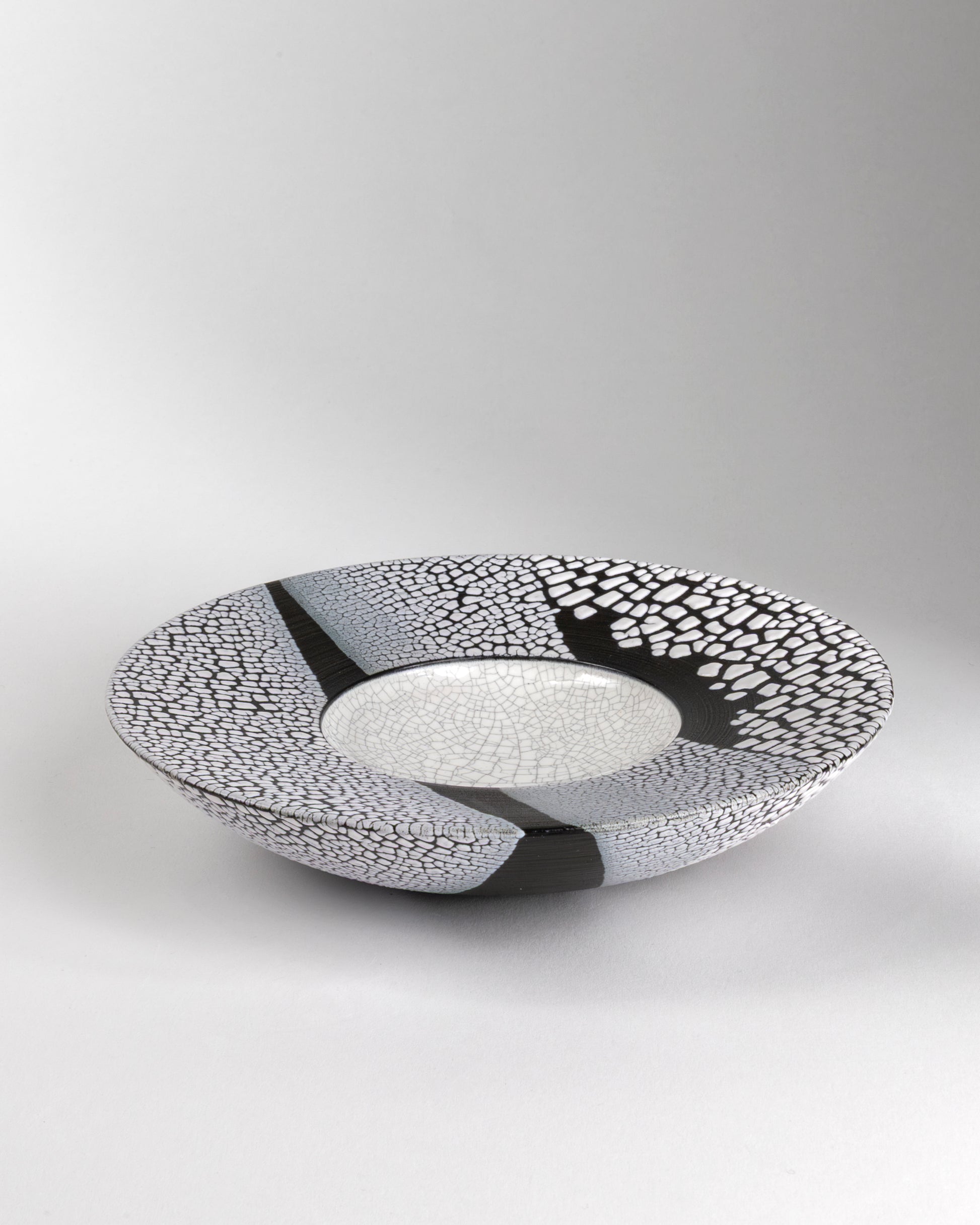 Thrown weighted stoneware Crucible with layered glazes and decorative slips inspired by the Winter Northumbrian coastline.