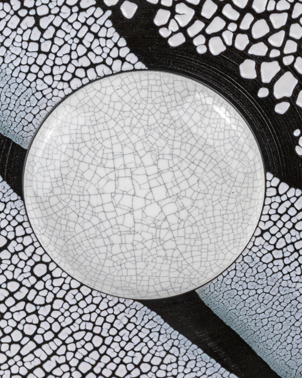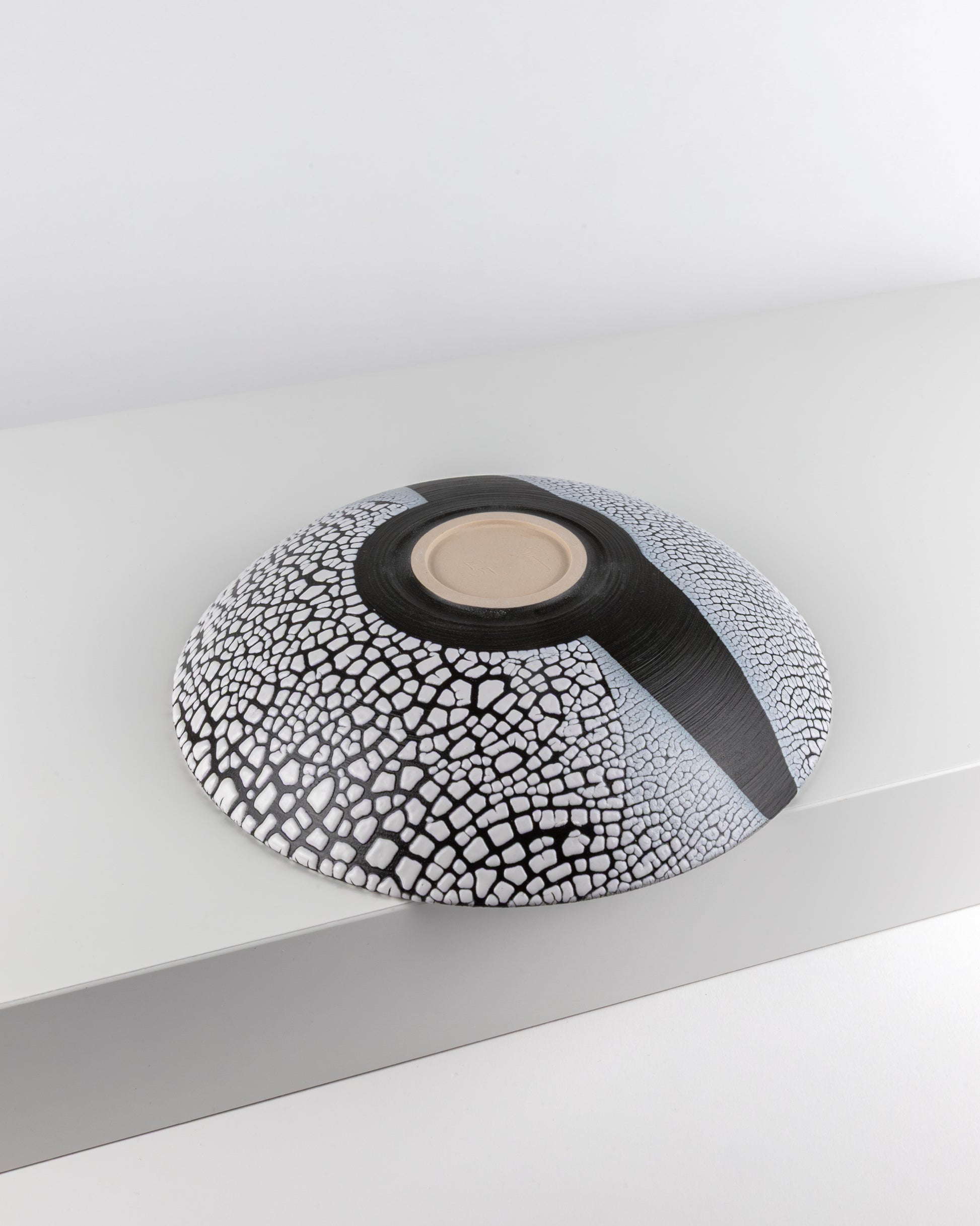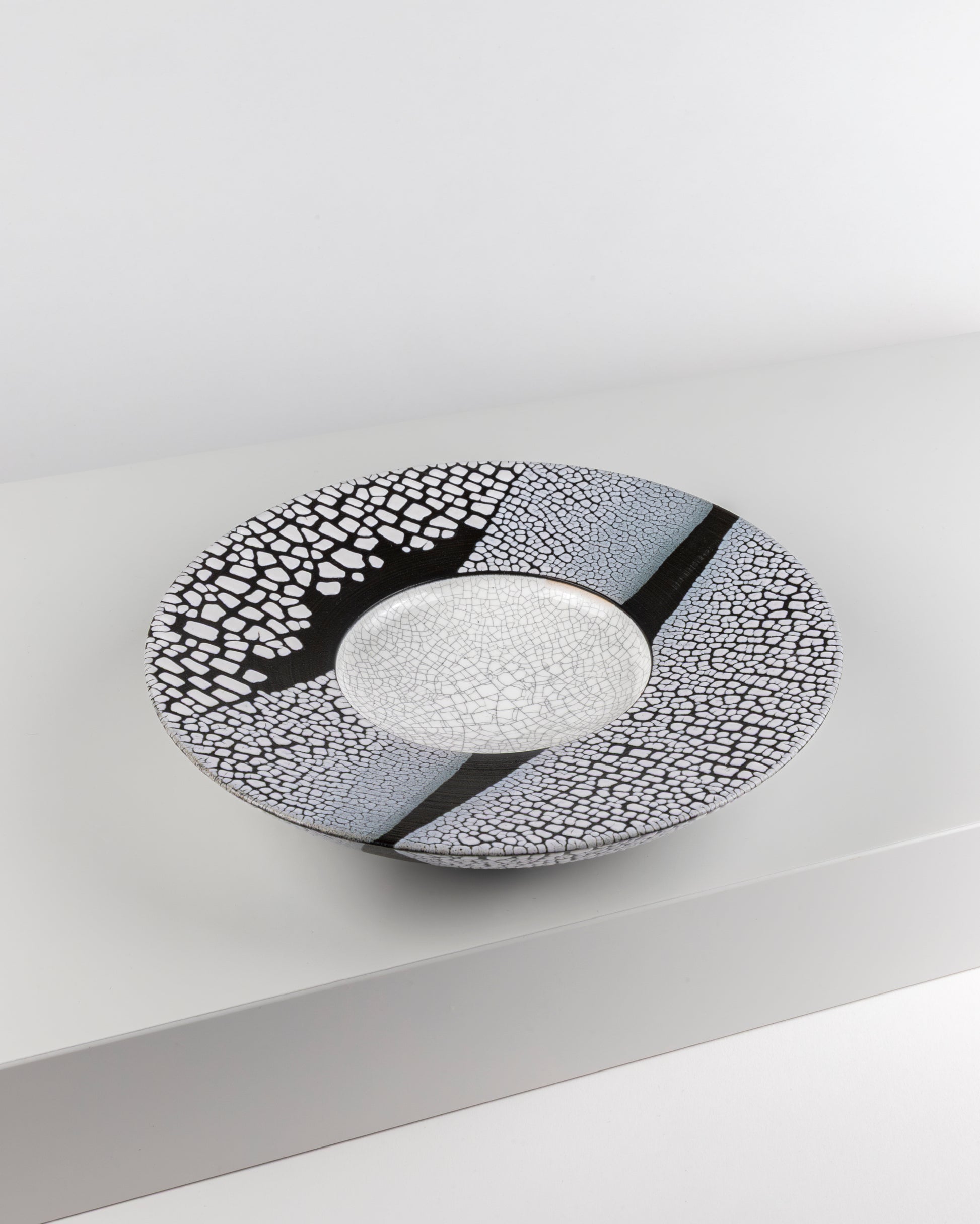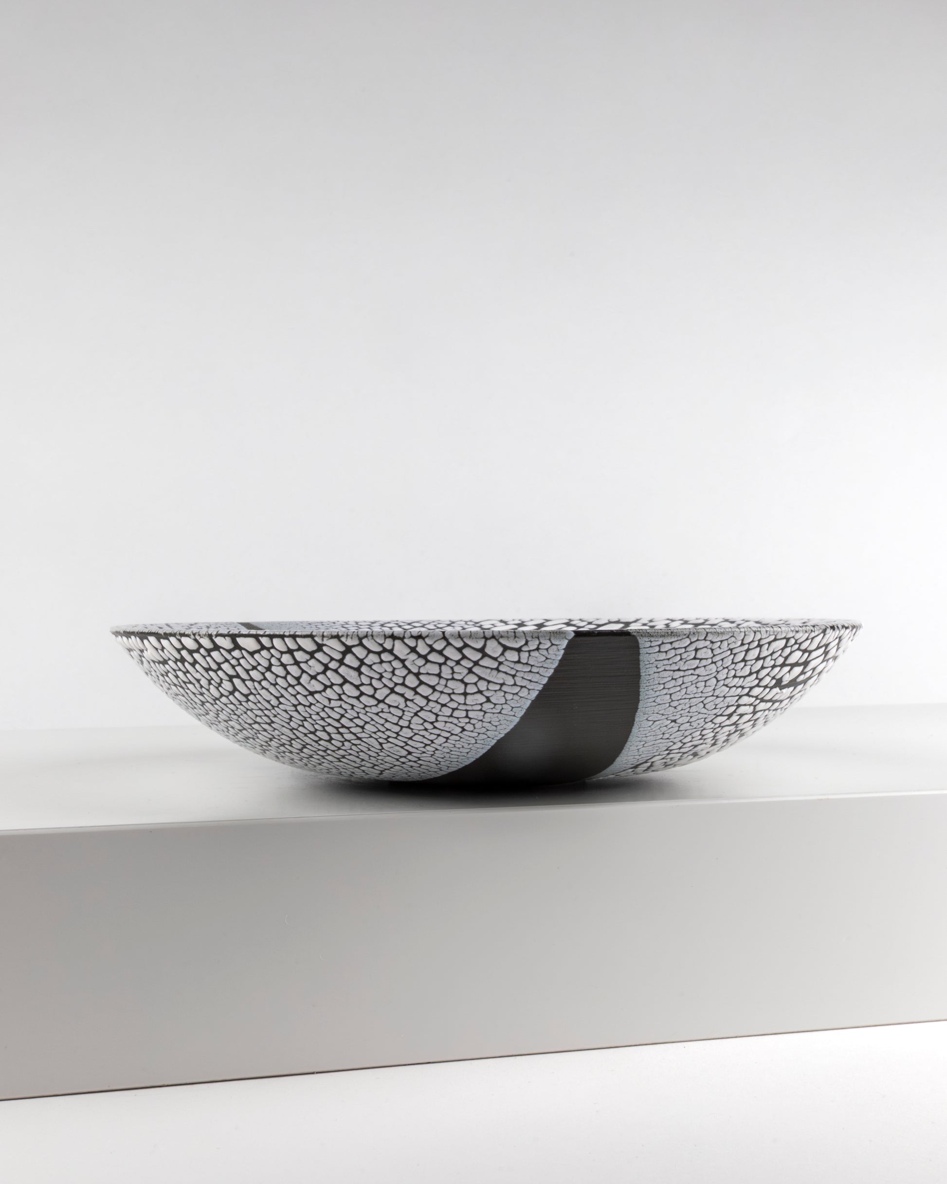 Thrown weighted stoneware Crucible with layered glazes and decorative slips inspired by the Winter Northumbrian coastline.