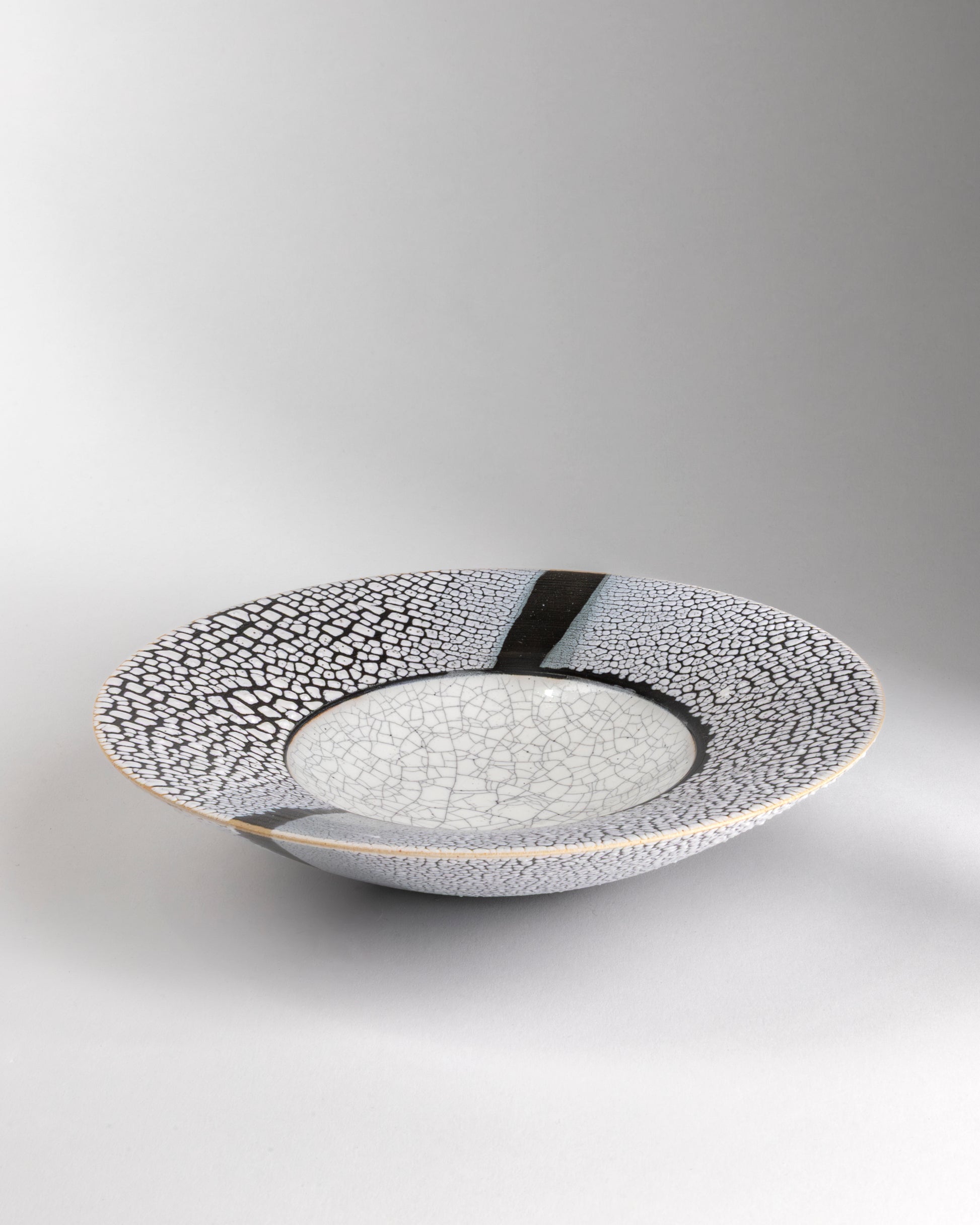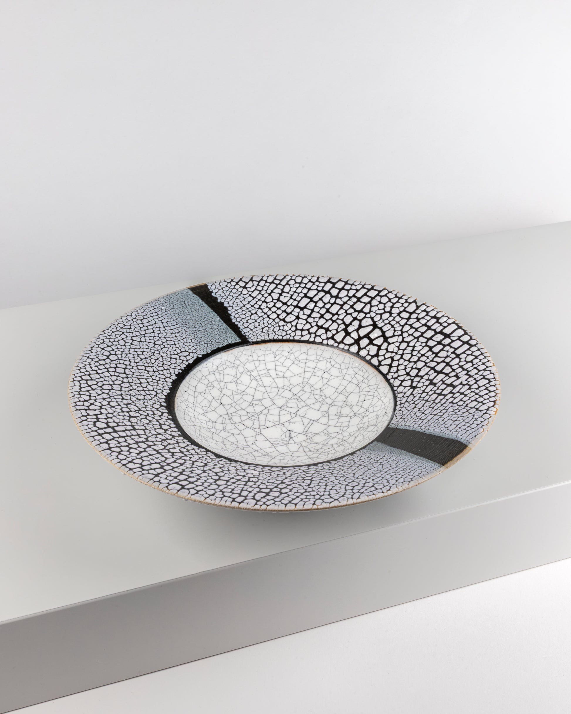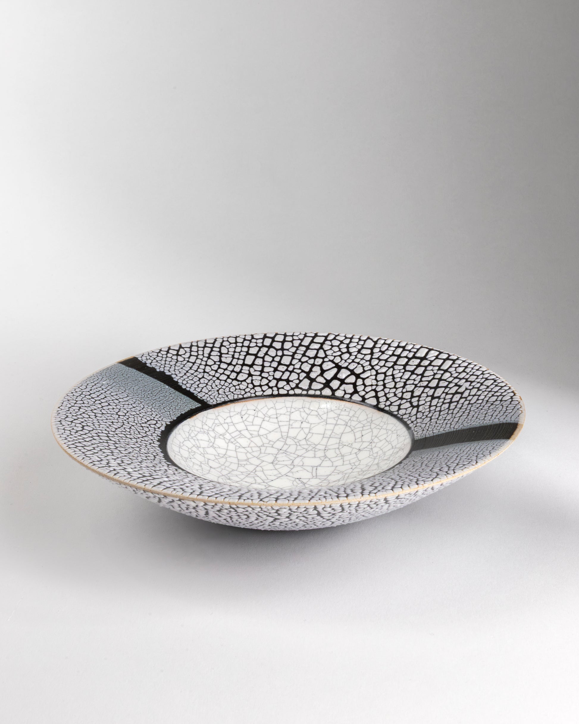 Thrown weighted stoneware Crucible with layered glazes and decorative slips inspired by the Winter Northumbrian coastline.