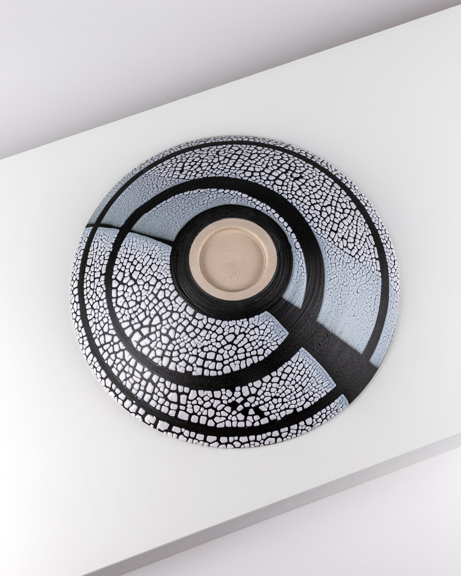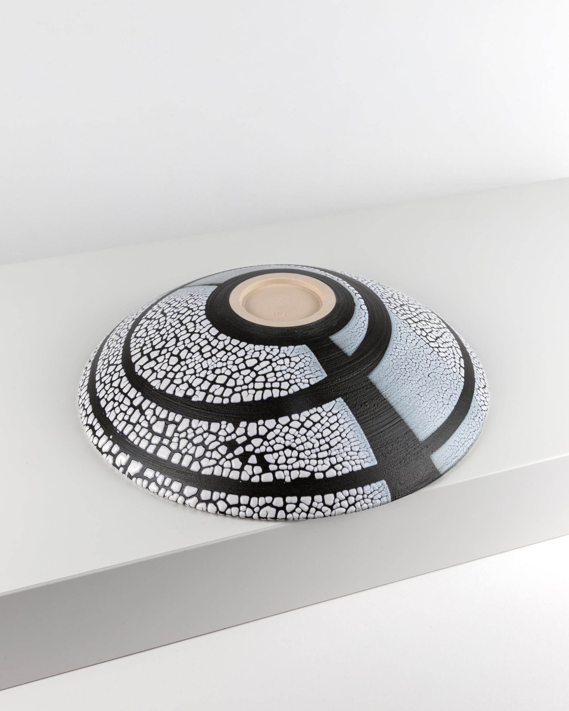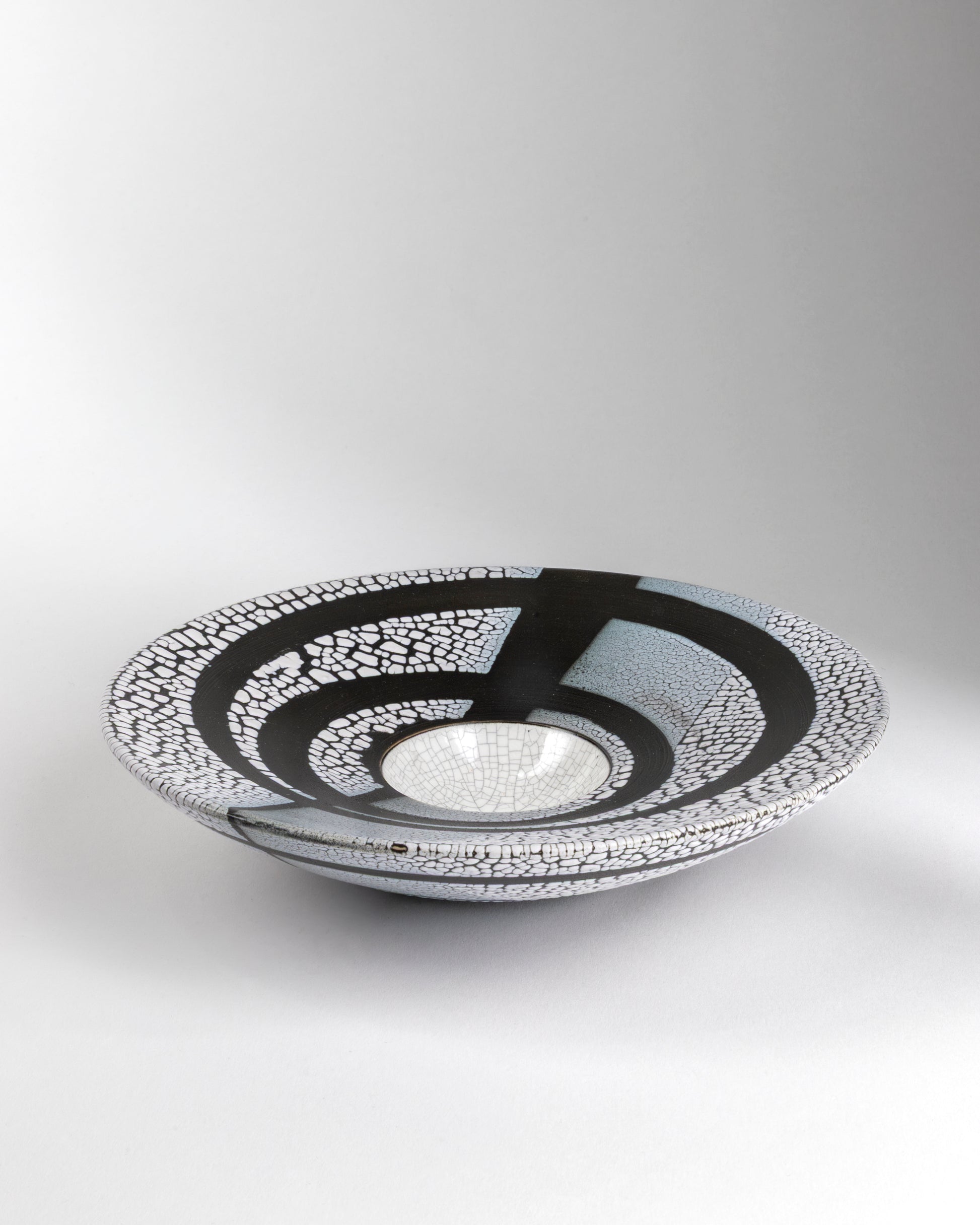 Thrown weighted stoneware Crucible with layered glazes and decorative slips inspired by the Winter Northumbrian coastline.